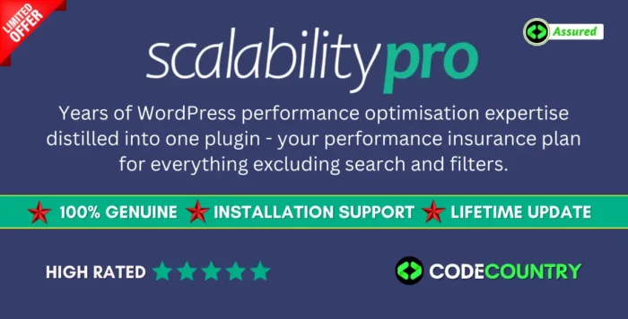 Scalability Pro 5.40 WordPress Plugin With Lifetime Update. Years of WordPress performance optimisation expertise distilled into one plugin – your performance insurance plan for everything excluding search and filters.